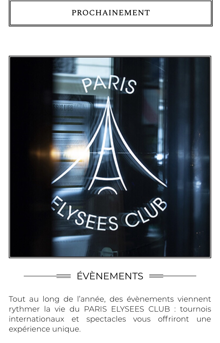 Le poker n’est pas la priorité du groupe Tranchant. Le message était clair dès l’ouverture de l’établissement. Toutefois, selon nos informations, le Paris Elysées Club situé rue Marbeuf envisage d’organiser de manière ponctuelle des tournois de poker de prestige à des Buy-in plutôt élevés. Sur son site internet, il a même une rubrique qui indique que des tournois sont possibles ( photo du bas ).