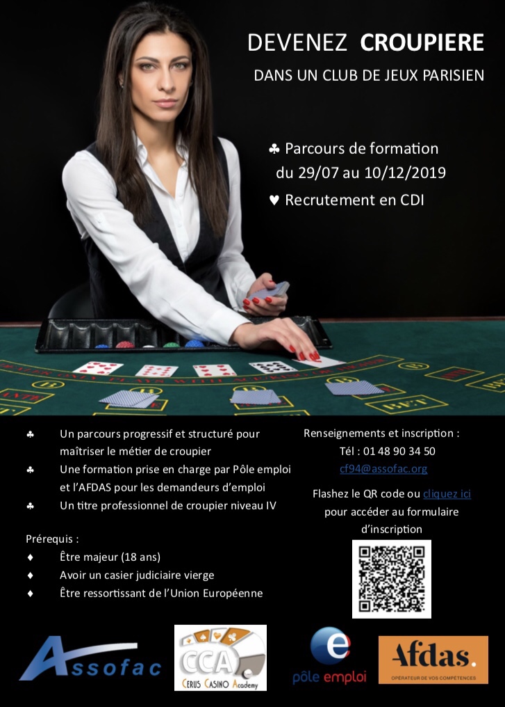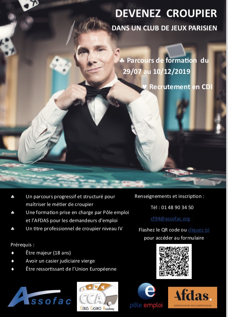 Pour faire fonctionner les clubs de jeux qui vont ouvrir à Paris, dans les prochains mois, de nombreuses embauches vont avoir lieu. L’AFDAS (l’opérateur de compétences de la branche casinos et clubs) et le Pôle EMPLOI viennent de renouveler leur confiance à CERUS CASINO ACADEMY et l’ASSOFAC en leur confiant la formation de 50 nouveaux croupiers débutants. Une vraie aubaine pour les Franciliens passionnés de poker et de jeux qui souhaiteraient associer leur passion et leur futur travail.