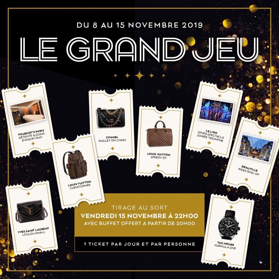 Du 8 au 15 novembre, le Club Barrière organise une opération spéciale intitulée « le Grand Jeu ». Il s’agit d’une loterie qui permet de remporter une série de cadeaux. Un bon levier marketing pour l’établissement des Champs-Elysées pour fidéliser sa clientèle.