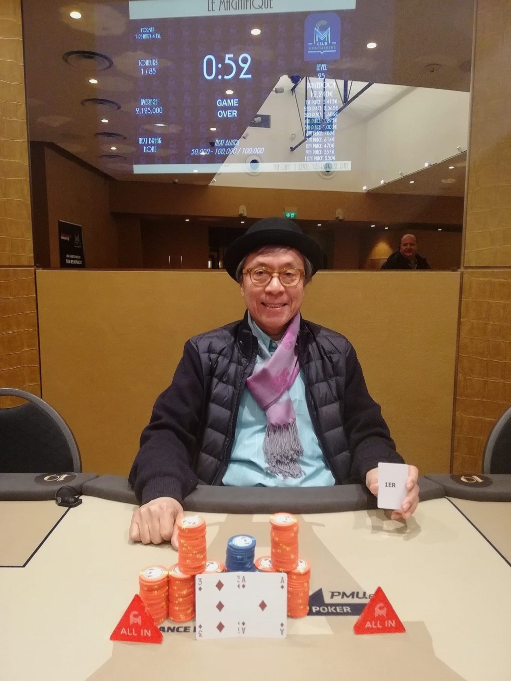 85 joueurs étaient en lice et c’est Sim Chin, un habitué du club, qui a tiré son épingle du jeu et empoche la coquette somme de 3.413€. 10 joueurs au total sont entrés dans l’argent. Le prochain rendez-vous à noter sur vos tablette est le Golden Bounty qui se déroulera mardi soir. A noter que le Club Montmartre va étendre ses horaires d’ouverture, dès ce lundi. Désormais, vous pourrez jouer des 17h !