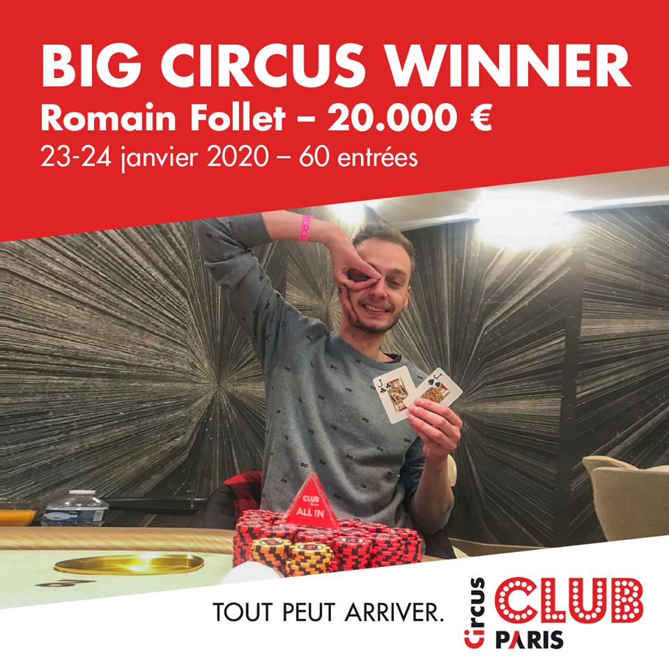 Au Club Circus Paris, 60 entrants ont participé au Big Circus. C’est Romain Follet qui a tiré son épingle du jeu et empoche 20.000€.