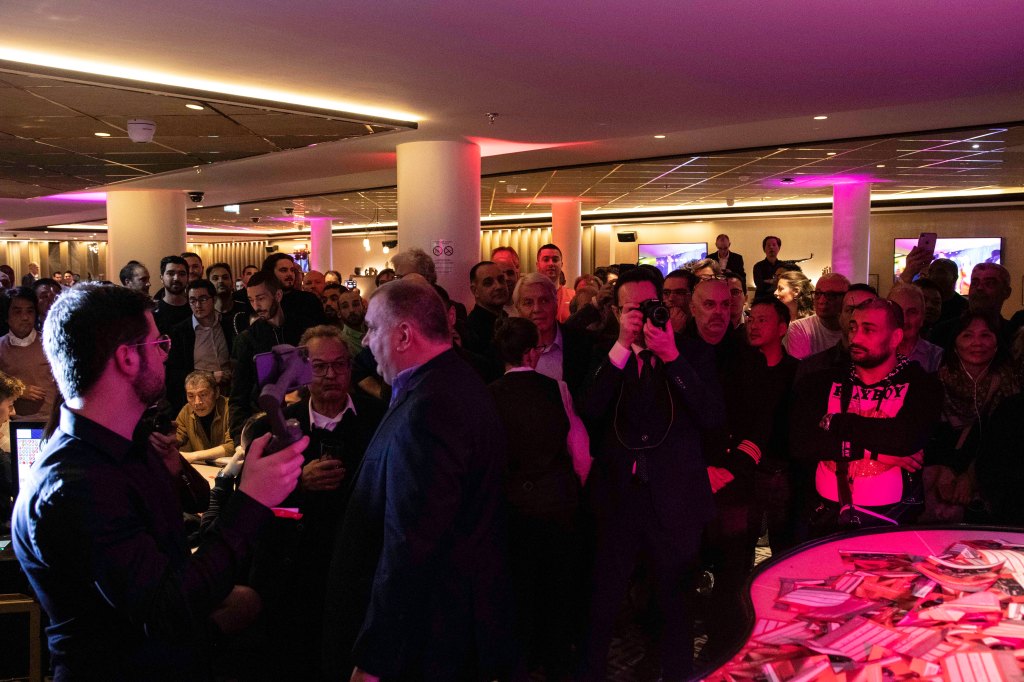 Elle trône en bonne place, devant l’entrée du club. Et c’est un peu la star de la soirée : l’Austin Mini mise en jeu au Club Circus Paris aiguise les appétits. Une fois entré dans le club, un Photo Call a été installé. Les invités prennent la pause. Les joueurs, people et personnalités de l’industrie ont fait le déplacement en masse. La salle de jeux comme le restaurant sont pleins à craquer. Les invités se serrent la main ou se checkent, avec la psychose du coronavirus en toile de fond.