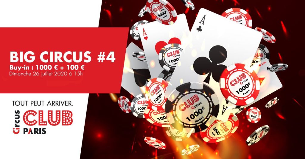Le Club Circus paris est devenu un lieu phare du poker dans la capitale avec ses tournois réguliers comme l’Open Circus ou le Monday Circus. Le dimanche 26 juillet à 15h, le club du 16e arrondissement va organiser pour la quatrième édition du BIG CIRCUS avec un Buy-in à 1.100€ ( 1.000€ + 100€) avec un format Big Blind Ante et un Re-entry autorisé.