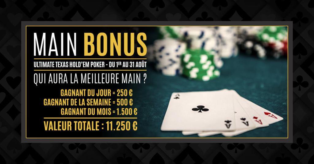 Du 1er au 31 août, le Paris Elysées Club lance un jeu qui s’appelle « La main bonus » pour récompenser ses joueurs d’Ultimate Poker.