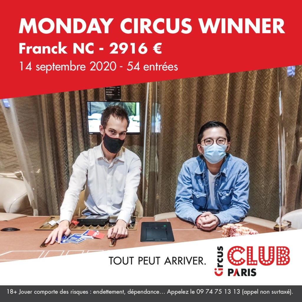 Lundi 14 septembre, le Club Circus Paris organisait son traditionnel Monday Circus. Ce tournoi au Buy-in de 170€ (150+20) fait toujours recette auprès des joueurs. D’ailleurs, pour disputer cet événement, il ne faut hésiter à anticiper pour s’inscrire. En effet, 50% des tickets sont disponibles à la caisse du Club, 72h avant chaque tournoi.