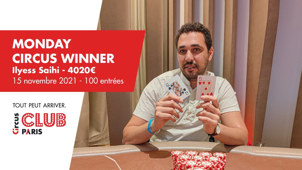 Comme tous les lundis, le Club Circus Paris organisait son tournoi Monday Circus. 100 entrants ont été comptabilisés sur ce tournoi à 170€, très prisé.