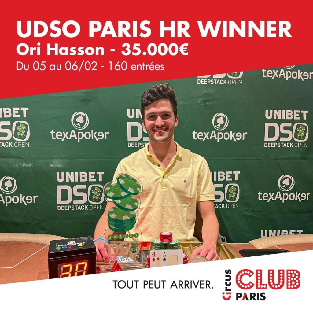 Dimanche soir, sur le High Roller de l’Unibet DeepStack Open, Ori Hasson a tiré son épingle du jeu. Le joueur empoche 35.000€ sur cet événement à 1.100€ qui a rassemblé 160 joueurs. 20 joueurs sont entrés dans l’argent. En table finale, on a pu retrouver Jean-Paul Pasqualini. Habitué des clubs de jeux, Mathieu Selides termine 11e (3.250€).