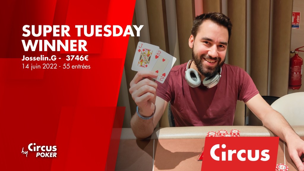 Comme tous les mardis, le Club Circus organisait son Super Tuesday à 250€ de Buy-in. 55 entrants ont été comptabilisés (11.616€ de Prizepool). C’est Josselin Gardes qui s’est imposé. Il a dominé Olivier Ayache en Heads-up. Jean-Michel Maire est passé de deux doigts d’être ITM.