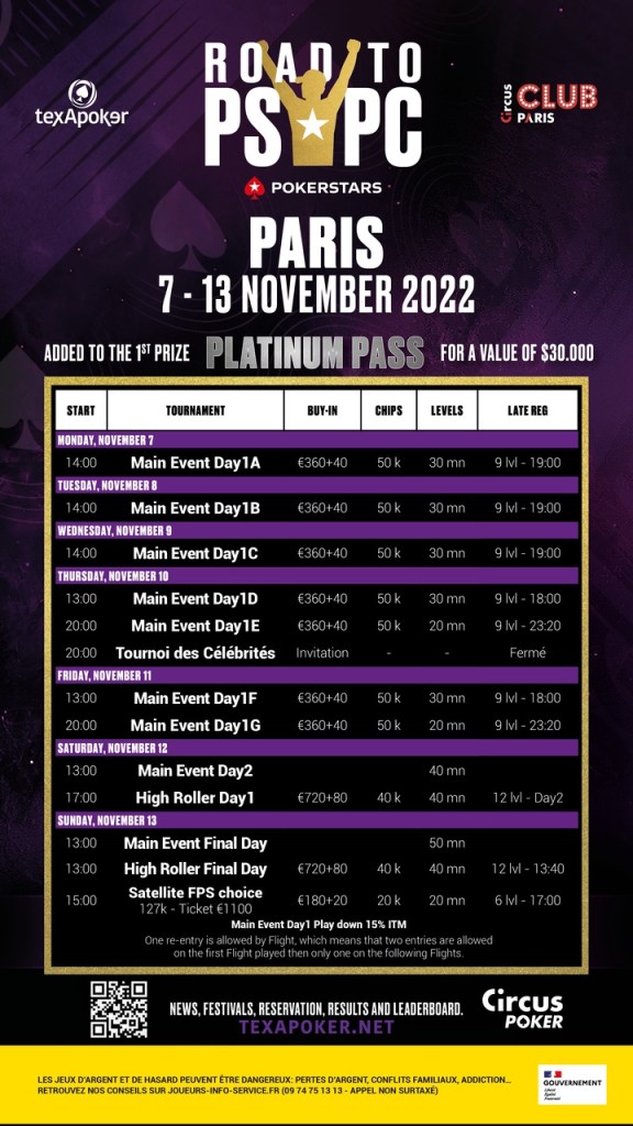 PokerStars, Texapoker et le Club Circus Paris mettent en jeu un Pass pour le PokerStars Players Championship (PSPC) aux Bahamas ! Ce festival Road to PSPC du 7 au 13 novembre 2022 promet d’attirer les foules.