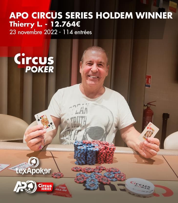 Mercredi 23 novembre, le Club Circus organisait une nouvelle édition de son nouveau rendez-vous : l’Apo Circus Hold’em au Buy-in de 500€. Les joueurs étaient présents en nombre puisque 114 entrants ont été comptabilisés.