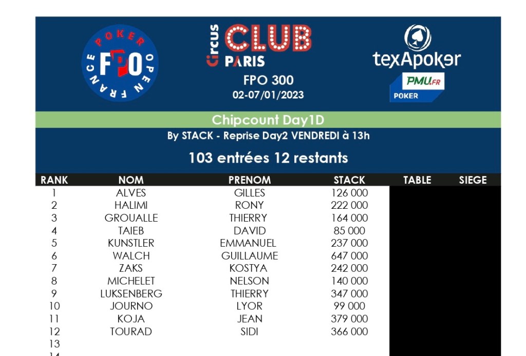 Le FPO 300 se poursuit au Club Circus. Hier, les joueurs se sont pressés pour prendre part au Day 1C et Day 1D.