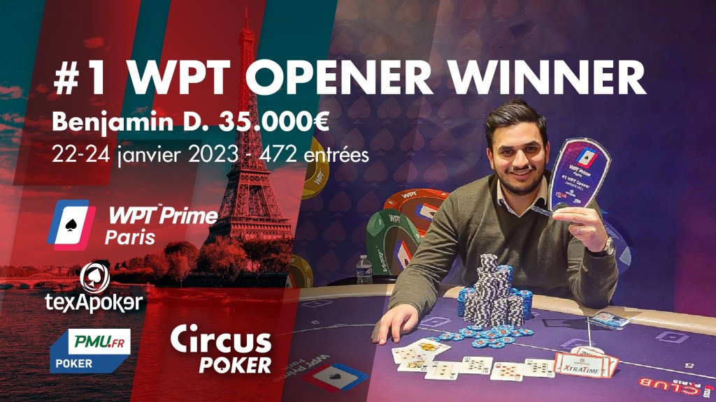 Au Club Circus, le WPT Prime Paris débute sur les chapeaux de roue. 472 entrants ont été comptabilisés sur l’Opener, un tournoi à 500€ qui a généré 199.372€ de prizepool. C’est Benjamin Dahan qui s’est imposé.