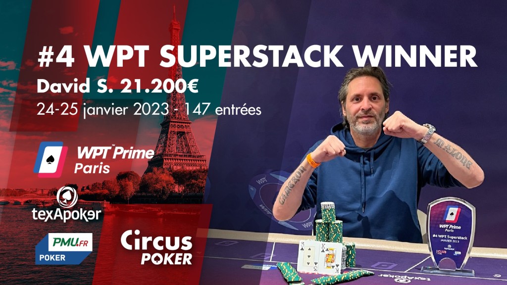 Le festival WPT Prime se poursuit au Club Circus Paris. Après l’Opener remporté par Benjamin Daham, c’est David Sacksick qui inscrit son nom au palmarès de la compétition après avoir gagné le SuperStack. Il repart avec 21.200€.