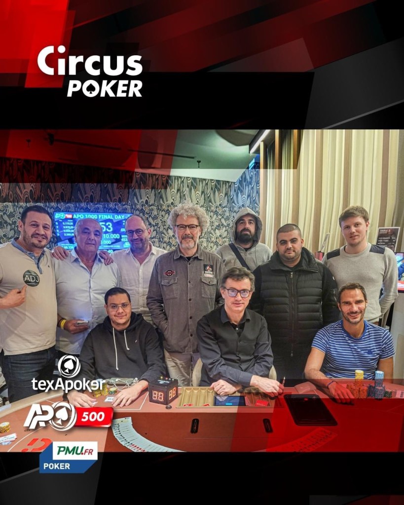 Sur l’APO 1000 qui se déroulait sur deux jours, on a recensé 102 inscrits pour un prizepool de 88.128€. Sur ce tournoi organisé avec le concours de TexaPoker et PMU Poker, on retrouvait de nombreux regs. 15 joueurs sont entrés dans l’argent. Ce fut le cas de Sam Benoliel ou de Michel Cohen.