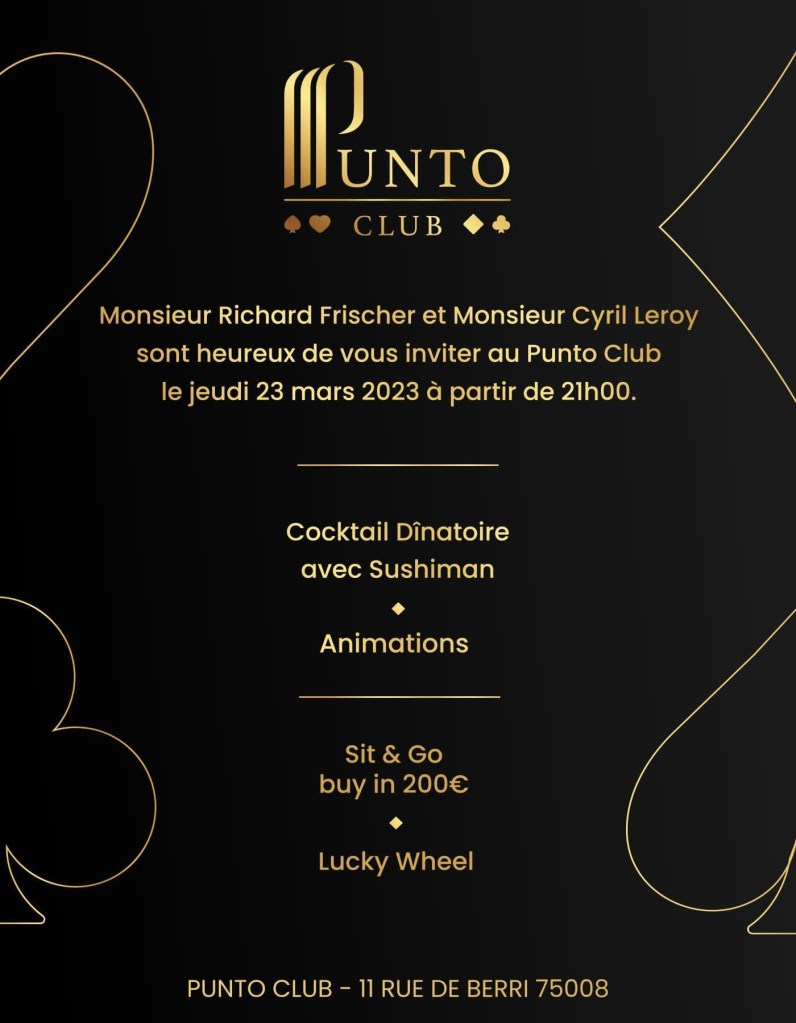 Installé à quelques pas des Champs-Elysées, le Punto Club est un club de jeux intimiste qui propose une belle offre de jeux de contrepartie et du poker. Jeudi 23 mars, l’établissement du groupe Partouche organise une soirée événement.