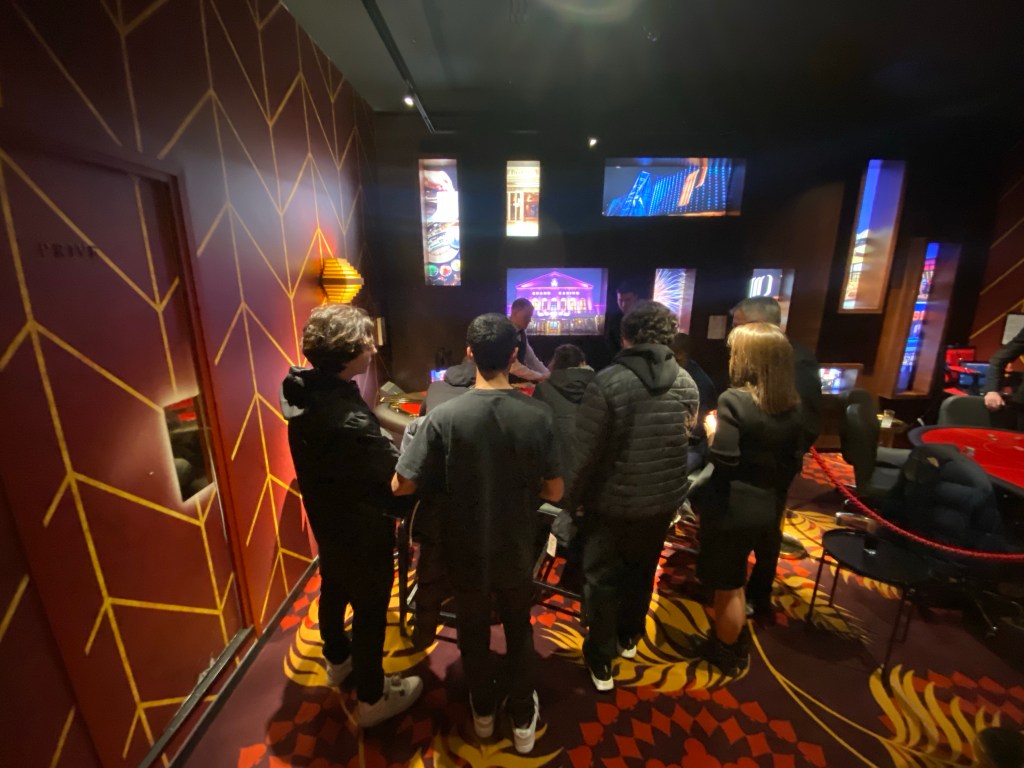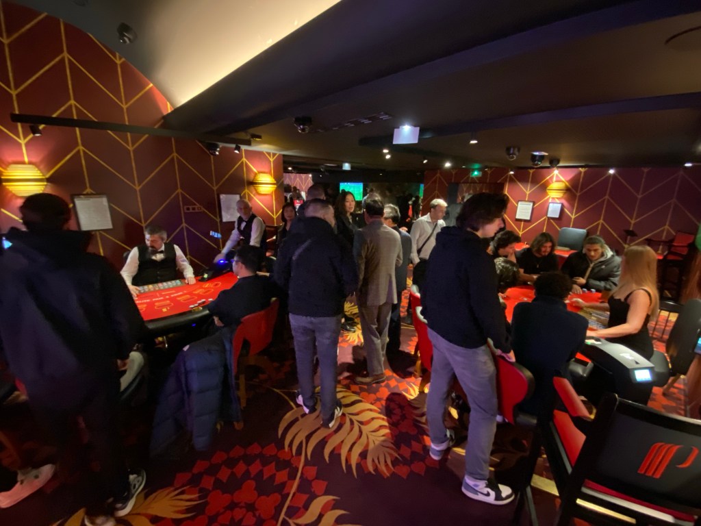 Les invités sont conviés à tourner régulièrement une grande roue électronique pour remporter des cadeaux (casquettes, jetons non négociables…). L’ambiance est bon enfant. Les joueurs et joueuses profitent aussi de l’Open Bar et des sushis. Cyril Leroy, le directeur responsable du club, navigue entre les tables. Minuit passé, le club est encore bien rempli.