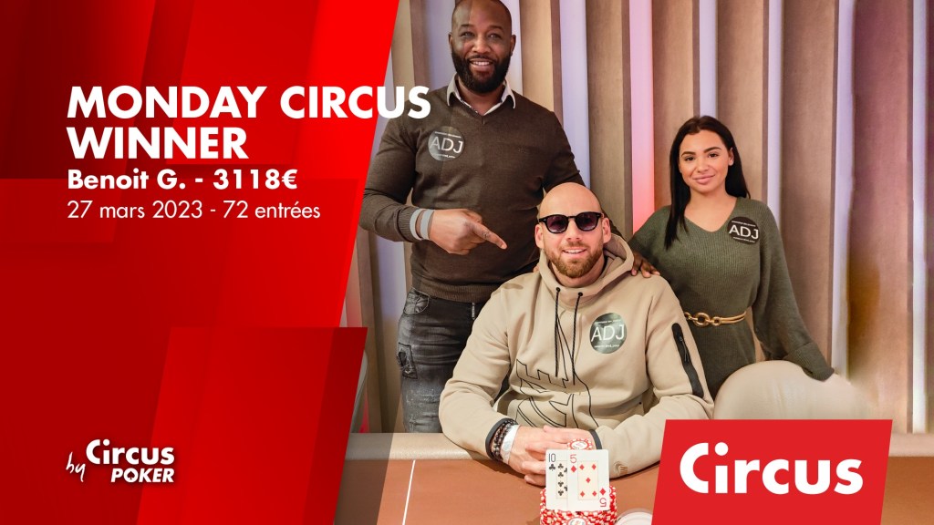 Ce lundi 27 mars, le Club Circus organisait son traditionnel Monday Circus à 170€ de Buy-in. 72 entrants ont pris part à ce tournoi (prizepool 10.368€).