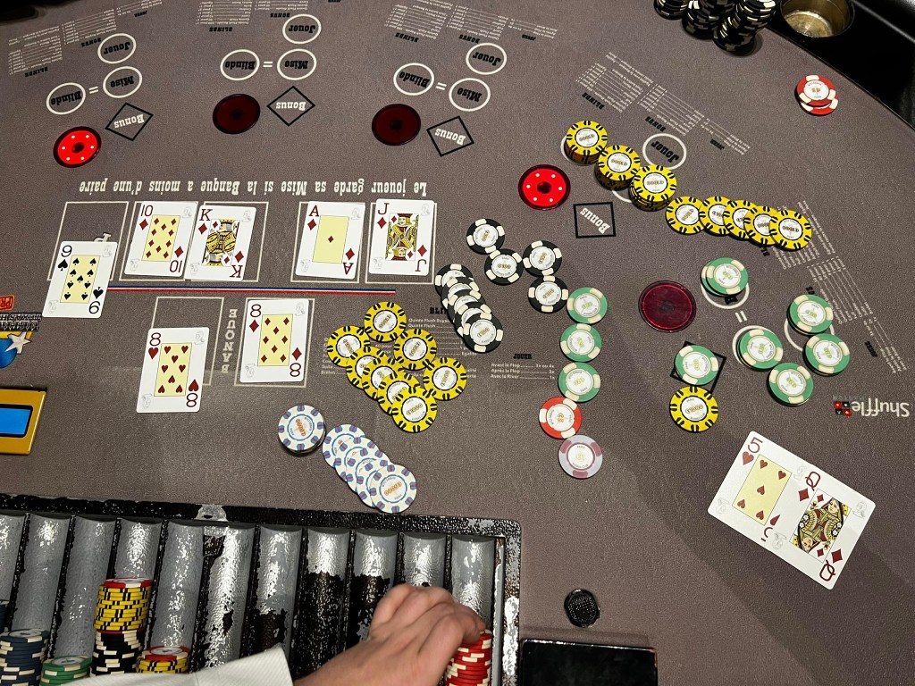 Hier, au Paris Elysées Club, rue Marbeuf, un joueur s’est installé à une table d’ultimate poker. Un peu plus tard, après avoir réalisé la mise annexe de 5€ et grâce à une quinte flush royale, il a décroché la cagnotte.
