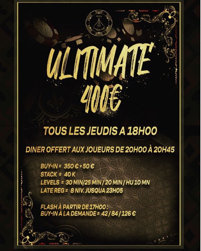 Le Paris Elysées Club met de plus en plus le poker à l’honneur. Outre le Cash Game qui est très actif, le club du groupe Tranchant mise sur les tournois avec un nouveau rendez-vous hebdomadaire, le jeudi, l’ultimate 400.