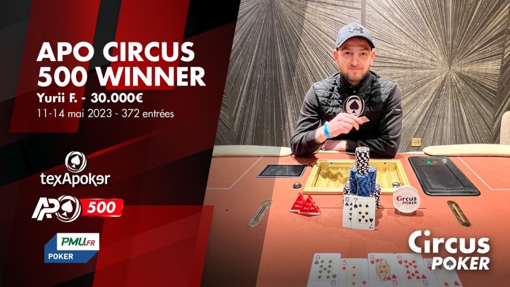 La semaine dernière, le Club Circus organisait un APO 500 avec trois journées de départ. Sur ce tournoi à 500€ de Buy-in, organisé avec le concours de TexaPoker, 372 entrants ont été comptabilisés pour un prizepool de 157.133€. Yurii Fliunt s’est imposé et empoche un joli chèque de 30.000€.
