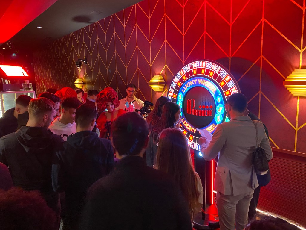 Régulièrement des invités rejoignent la Lucky Wheel pour gagner des jetons non négociables. L’excitation est palpable. Un peu plus tard dans la soirée, une fanfare vient entonner un joyeux anniversaire. Richard Frischer et Cyril Leroy viennent saluer les habitués. Louis Desjardins, l’un des MCD est aussi là.