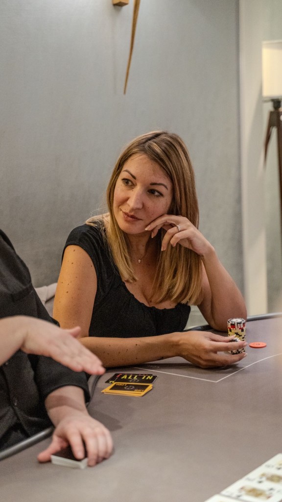 Les coups s’enchaînent et « « all in » se multiplient. L’ambiance est bon enfant. Michel Cohen, Bruno Solo et Stéphanie Tribot se retrouvent à la même table.