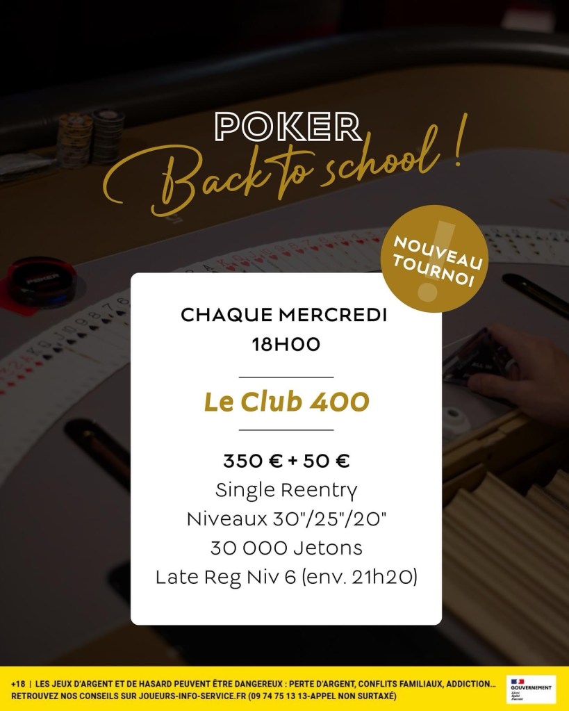 L’arrivée du Club 400 s’annonce comme une nouvelle opportunité pour les passionnés de poker de se mesurer dans une ambiance conviviale, au sein de l’un des clubs les plus emblématiques de la capitale.