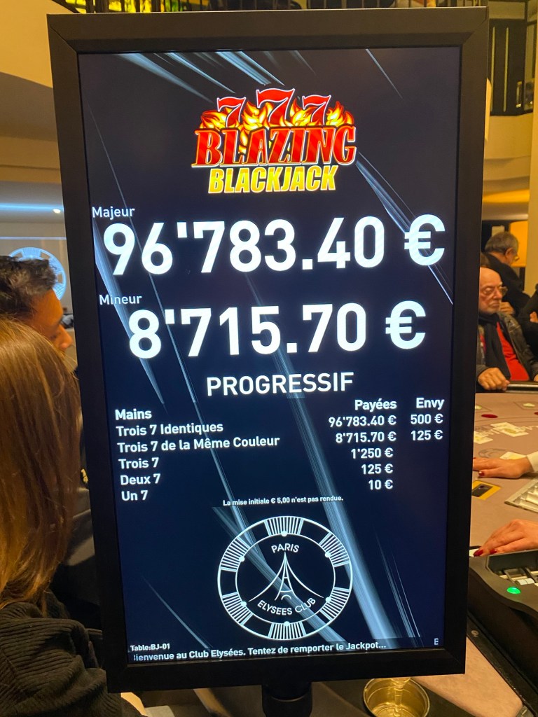 Les tables de Punto Banco et d’Ultimate Poker ont affiché complet, tandis que l’attraction du soir, le Jackpot progressif du Blackjack, frôle désormais les 100.000€, faisant monter la tension à chaque mise.