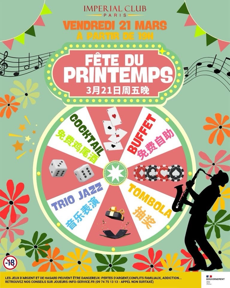 Le vendredi 21 mars, l’Impérial Club Paris invite les joueurs et les joueuses à une soirée festive marquant l’arrivée du printemps. Entre musique et gastronomie, l’établissement met en place un programme aux petits oignons.