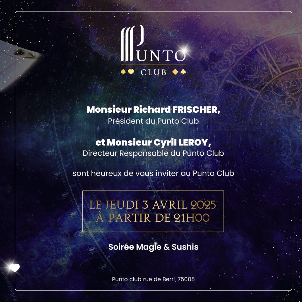 Situé à deux pas des Champs-Élysées, le Punto Club est un établissement intimiste dédié aux jeux de contrepartie, offrant une expérience exclusive aux passionnés. Cette soirée est l’occasion idéale pour redécouvrir ce lieu emblématique.