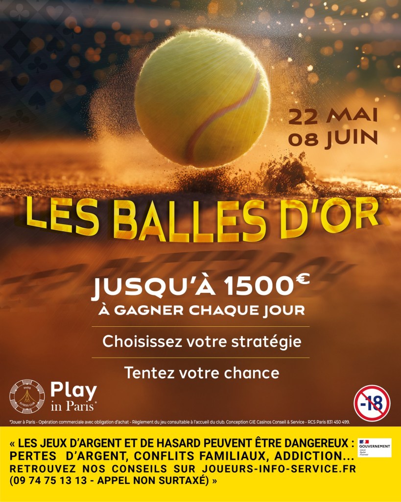 Le calendrier n’a rien d’anodin : l’opération s’achèvera le dimanche 8 juin, jour de finale de Roland-Garros. Un clin d’œil assumé au monde du tennis, dont les balles jaunes ont été ici troquées contre des balles dorées. Et si le prestige de la Coupe des Mousquetaires restera à la Porte d’Auteuil, les plus chanceux des joueurs du Paris Elysées Club pourraient bien repartir avec une moisson de jetons.