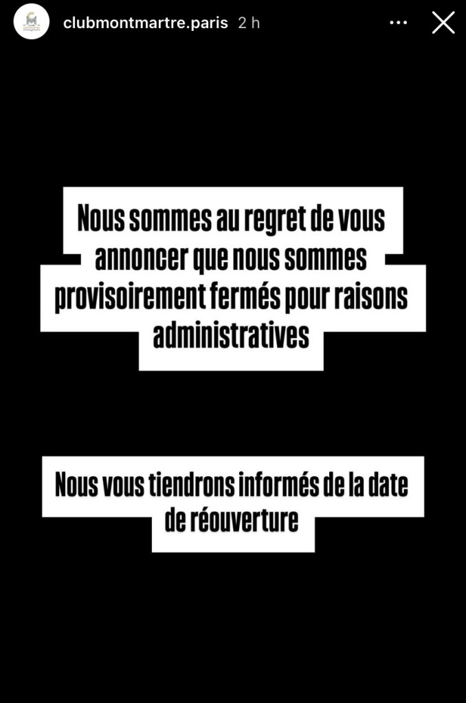 Coup dur pour les habitués du Club Montmartre. Ce vendredi après-midi, l’établissement de la rue de Clichy a annoncé sur ses réseaux sociaux sa fermeture provisoire pour raisons administratives. Un message laconique, sans plus de précisions, qui suscite de nombreuses interrogations dans le milieu du jeu parisien.