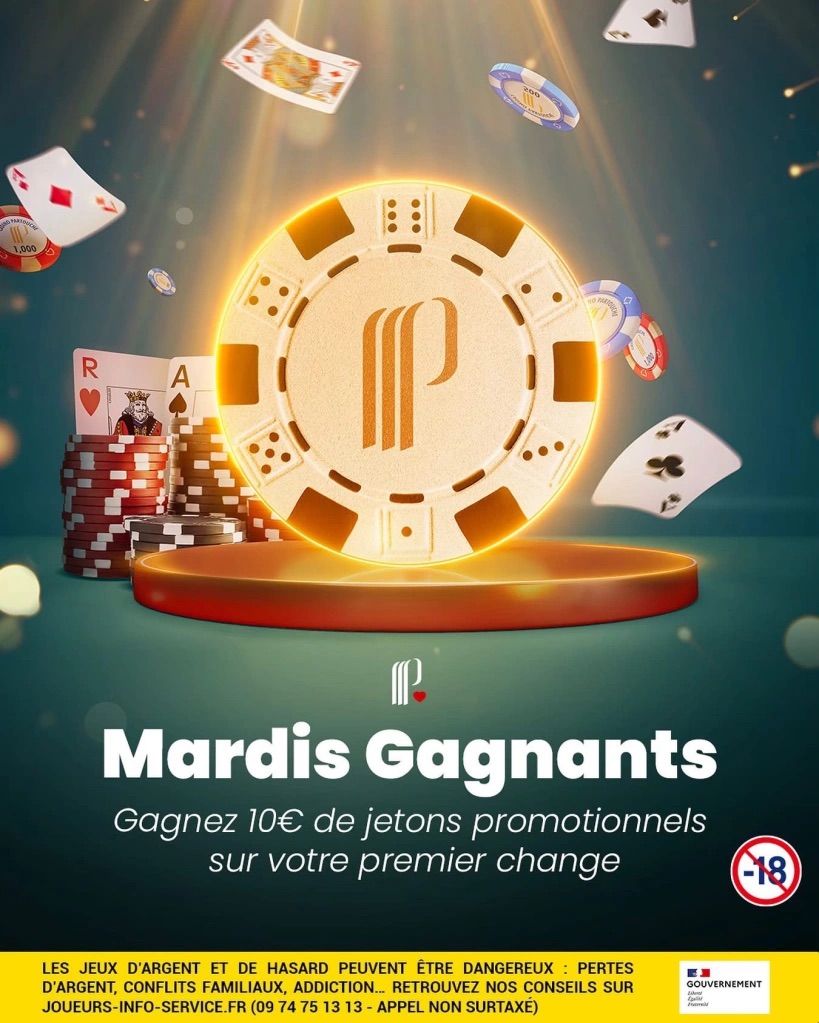 Depuis le 20 mai et jusqu’au 24 juin 2025, chaque joueur qui pousse la porte du club un mardi soir se voit remettre 10 € en jetons promotionnels, offerts sur le premier change. Une opération baptisée Les Mardis Gagnants, qui ne demande ni mise minimum ni conditions complexes. Le bonus est automatique, le simple fait d’être là suffit.