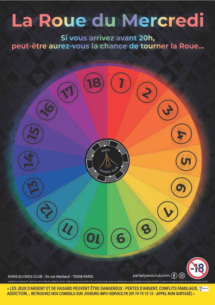 Le Paris Elysées Club s’apprête à enrichir son offre d’animation avec le lancement, ce mercredi, d’un tout nouveau jeu promotionnel : La Roue du Mercredi. Une opération, éphémère ce mercredi 19 novembre et le 26 novembre.