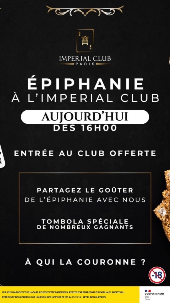 Ce dimanche 4 janvier, l’Imperial Club Paris célèbre l’Épiphanie à sa manière, avec une après-midi placée sous le signe de la convivialité et du jeu. Dès 16h, le club propose un moment festif accessible à tous, avec entrée offerte.