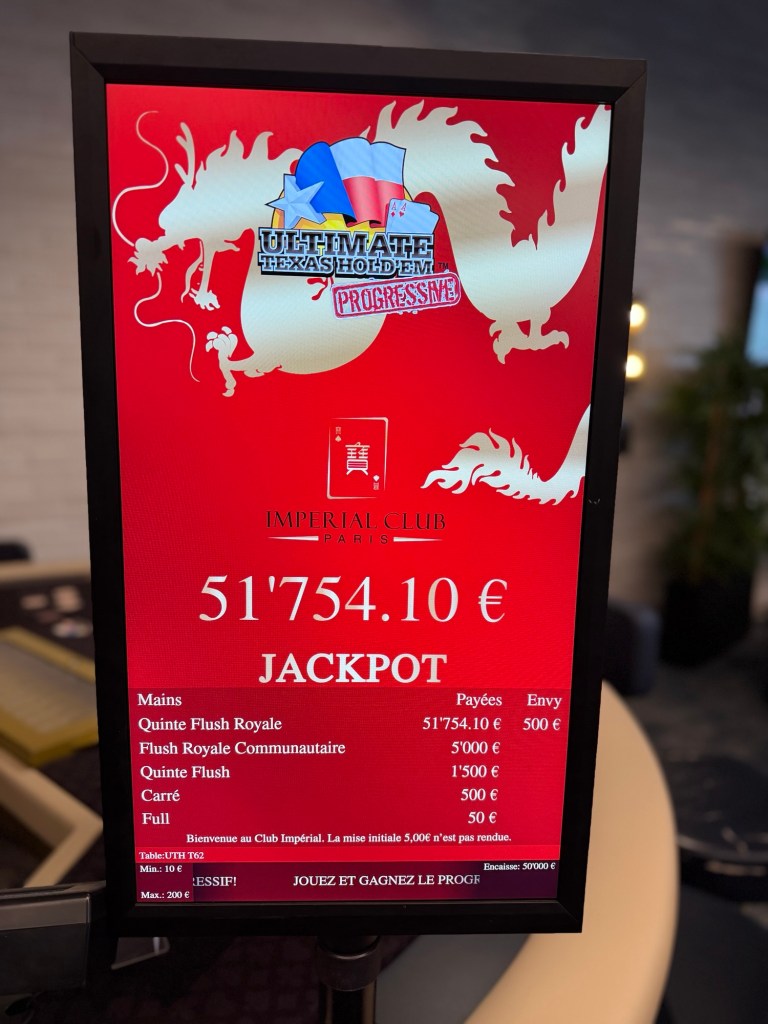 Pour les novices qui ne connaissent pas le fonctionnement, c’est simple, pour pouvoir espérer décrocher le Jackpot, il suffit d’ajouter une mise annexe de 5€, en plus du coup joué à l’ultimate et si vous obtenez une quinte flush royale, le Jackpot est à vous !