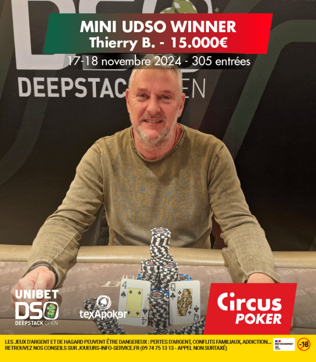 Le Mini UDSO, tournoi du festival UDSO organisé en partenariat avec TexaPoker au Club Circus Paris, a tenu toutes ses promesses. Avec 305 entrées et un prizepool de 76 128 €, ce tournoi à 300 […]