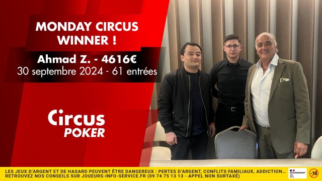 Ahmad Zeerak triomphe sur le Monday Circus du Club Circus. Avec une prestation de haut vol, Zeerak a décroché la première place, empochant la somme de 4 616 € face à un field de 61 […]
