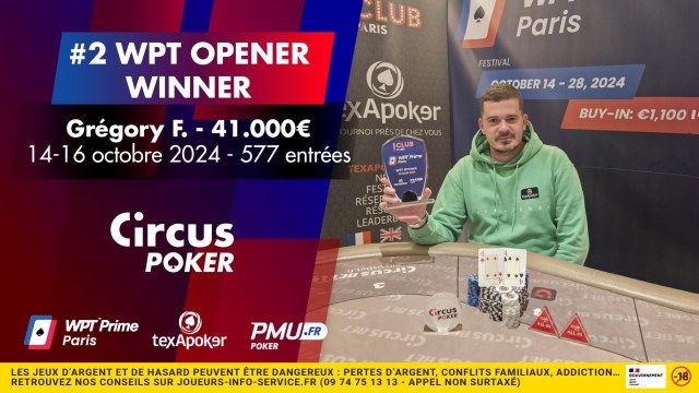 Le Club Circus accueille en ce moment le WPT Prime Paris en partenariat avec TexaPoker. L’Opener a livré son verdict et Grégory Fournier a confirmé sa forme éclatante en s’imposant parmi un field de 577 […]