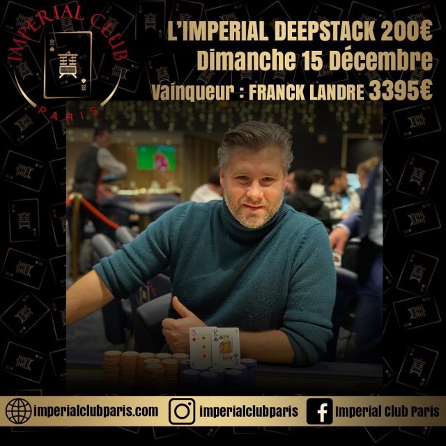 Dimanche dernier, l’Imperial Club Paris organisait la deuxième édition de l’Imperial Deepstack. Un tournoi à 200€ avec une structure assez profonde. 52 entrants ont été comptabilisés sur cet événement sur lequel 6 joueurs sont entrés […]
