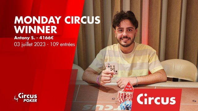 Comme tous les lundis, le Monday Circus à 170€ organisé au Club Circus a fait le plein. 93 entrants ont été recensés. C’est Matthieu T. qui inscrit son nom au palmarès et repart avec 3682€. […]