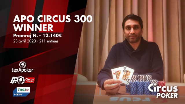 Une fois de plus, l’APO Circus 300 a fait le plein au sein du club du 16e arrondissement avec 211 entrants sur ce tournoi à 300€ (prizepool de 52.666€) et c’est Premraj Nithianantham qui a […]
