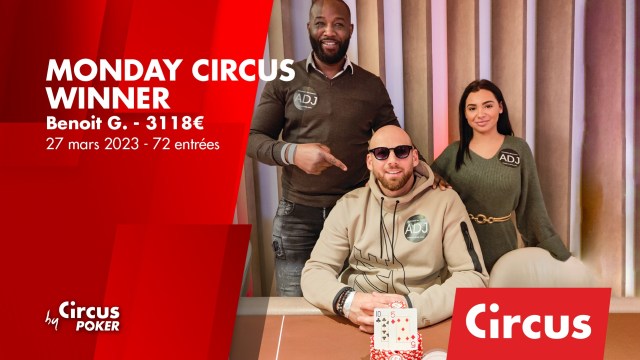 Ce lundi 27 mars, le Club Circus organisait son traditionnel Monday Circus à 170€ de Buy-in. 72 entrants ont pris part à ce tournoi (prizepool 10.368€). C’est un habitué du club, Benoit Grobocopatel qui s’est […]