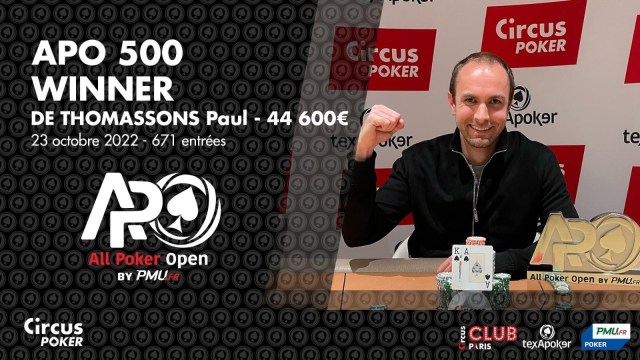 Ce festival APO 500 by TexaPoker qui s’est déroulé toute la semaine dernière, au Club Circus, fut une belle fête du poker. Après les quatre journées de départ, 671 entrants ont été comptabilisés (283.430€). Une […]