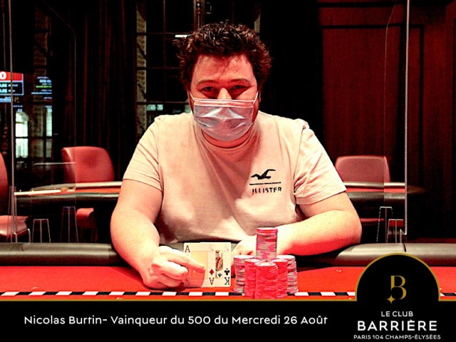 Mercredi 26 août, le Club Barrière organisait son traditionnel tournoi du mercredi à 560€ de Buy-in. 77 entrants ont été comptabilisés. C’est Nicolas Burtin qui a tiré son épingle du jeu et signe première victoire […]